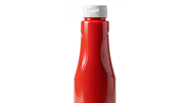 Vibrant Red Squeeze Bottle With White Cap On Black