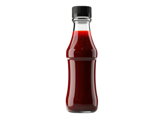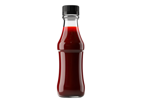 Red plastic ketchup bottle with no label featu isolated on white or transparent background.