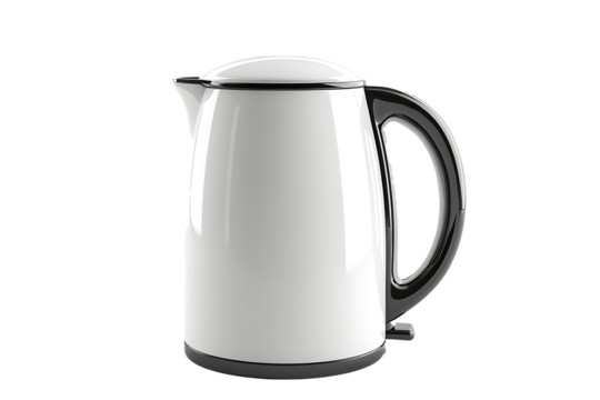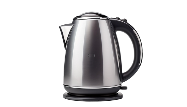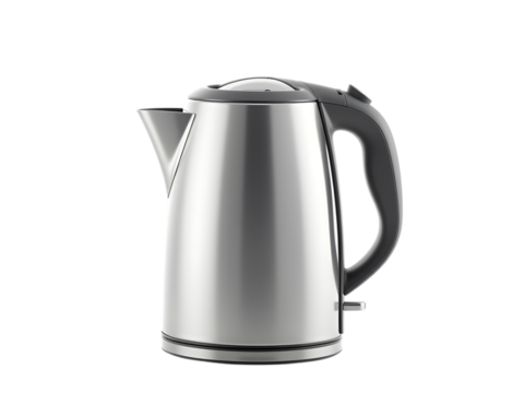 Modern electric kettle made of metal, clean white background, soft studio lighting,object,kitchen,boil