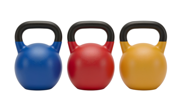 Colorful kettlebells for fitness,isolated on transparent or white background