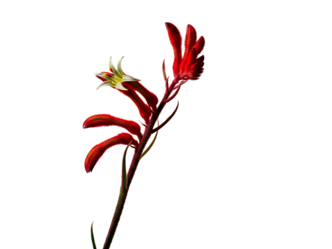 Red Kangaroo Paw flower isolated on a white background, a vibrant botanical study of Australian native flora
