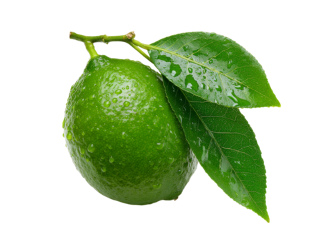 Fresh lime with dew drops on leaves isolated on black, Isolated On White Background, Png Transparent