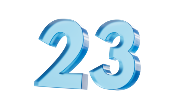 3d Glossy Blue number 23 with a smooth finish and reflective highlights. 3d illustration