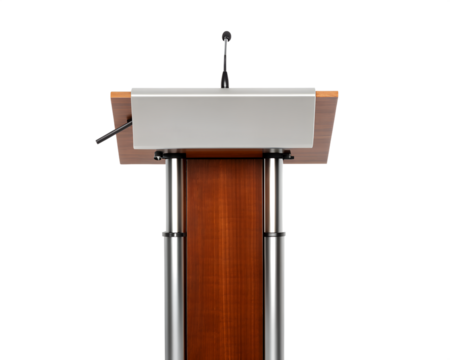 Wooden lectern for speeches or academic presentations, a standing podium for public speaking, transparent background