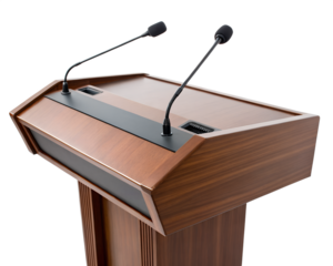 Businessman delivering speech at corporate meeting with transparent background