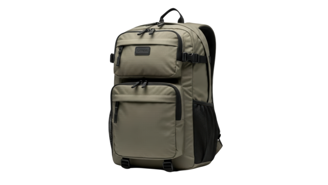 Smiling woman wearing khaki full-sleeve jumpsuit with transparent background