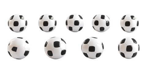 Pack Soccer Ball Set in Different Poses Against Transparent Background for Sports, Athletic Events, or Game Illustrations