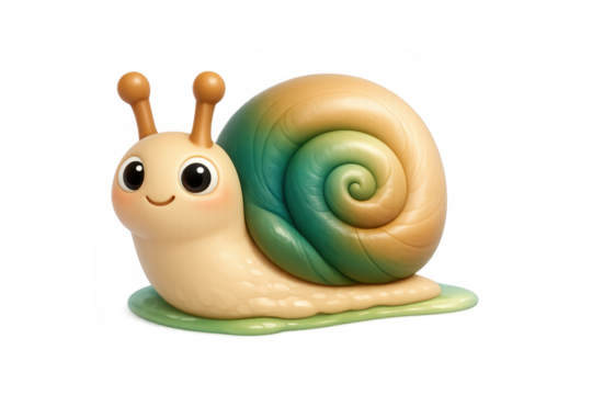 Cute snail character with pastel swirl shell on gradient background for children's design