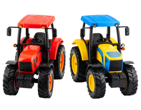 Toy Tractors Red and Yellow Tractors on dark, plain background. Use Toy store catalog photo