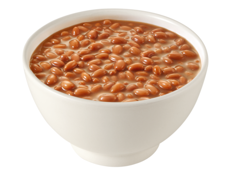Steaming bowl of hearty smoked sausage and mixed bean stew, comfort food dish. isolated PNG with Transparent Background