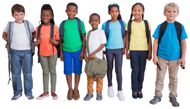 Digital png photo of view from above of happy diverse children standing on transparent background