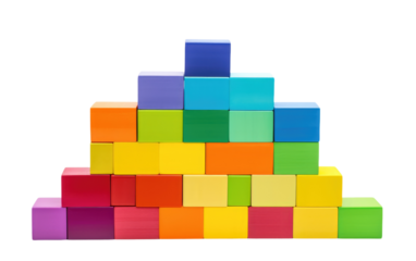Stackable Blocks in Primary Colors, Building Vibrant Structures with Playful Hues on a White or Clear Surface PNG Transparent Background