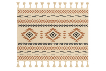Four Ethnic Pattern Rug Isolated on Black, Geometric Textile Mat with Fringes against a transparent background