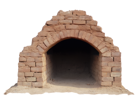 Electric pottery kiln made of fire bricks with metal latch and peephole isolated on transparent background
