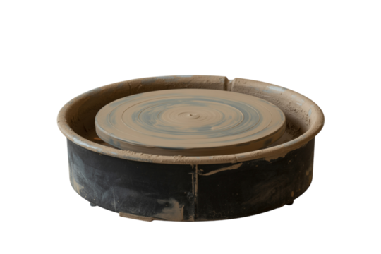 Dirty pottery wheel with clay residue isolated on transparent background