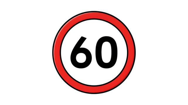 Speed limit 60 kilometers per hour traffic sign icon in red circle for road safety regulation transparent background