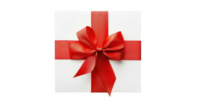 A beautifully wrapped white gift box with a red ribbon and bow. symbolizing celebration and joy. perfect for holidays or special occasions. set against a clean white background