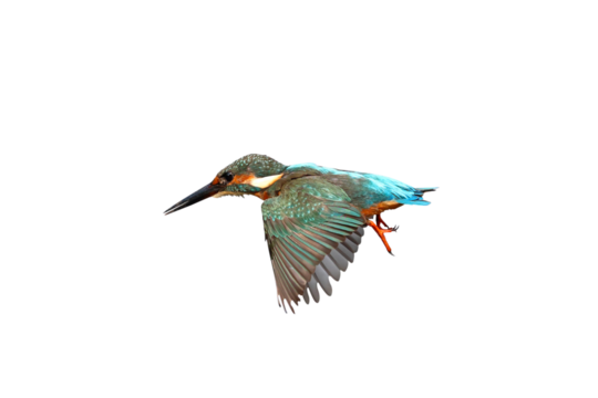 Common kingfisher bird in flight isolated on transparent background