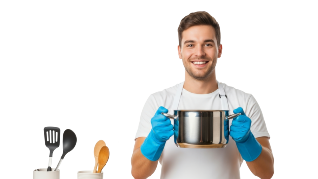 Smiling woman cleaning with transparent background
