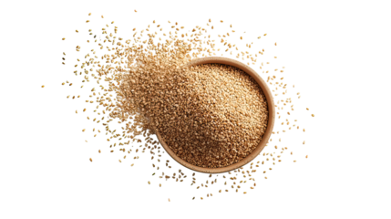 Ground cinnamon powder spill on white surface in kitchen natural food ingredient concept isolated on transparent background, png