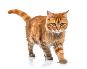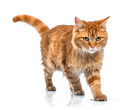 An orange tabby cat walking gracefully isolated on a transparent background, showcasing its elegant movement and curious nature