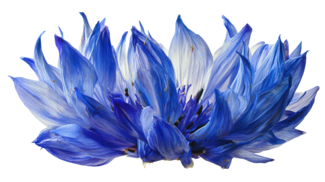 Blue cornflower blooming, showing vibrant petals and delicate botanical beauty, isolated on a transparent background