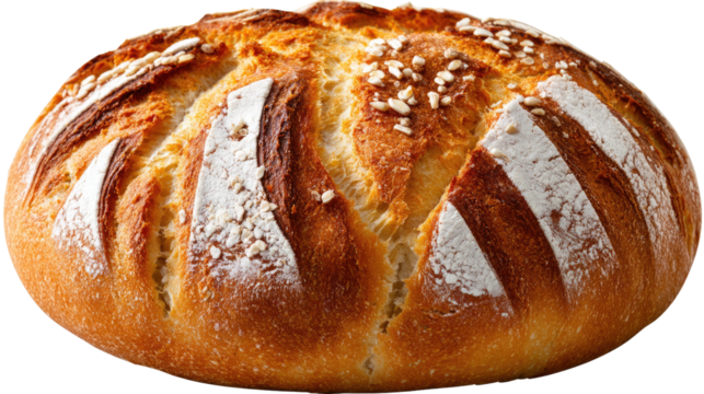 Freshly baked crusty bread loaf isolated transparent background