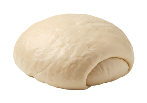 Round dough ball on a wooden cutting board, isolated on transparent cutout background