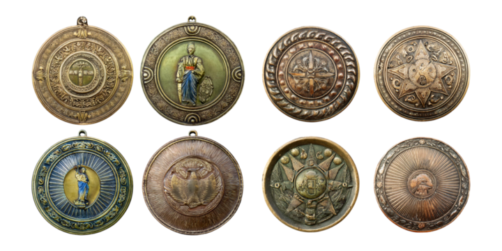 Vintage Medals with Intricate Designs and Historical Themes