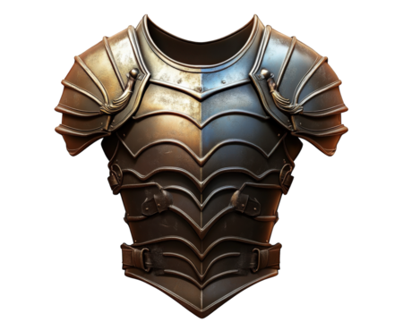 Medieval armor chest plate with intricate details and metallic finish, showcasing blend of bronze and silver tones. Perfect for historical themes or fantasy settings