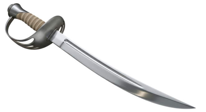 Close up of classic medieval sword with polished steel blade and detailed hilt design on Transparent Background