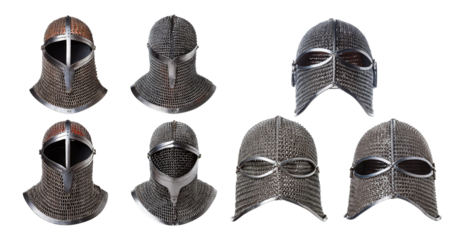 Various Styles of Historical Chainmail and Iron Helmets Displayed, PNG bundle collection, Isolated on Transparent Background