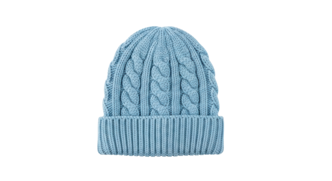 Cozy knit beanies with pom poms, various styles, isolated on transparent background