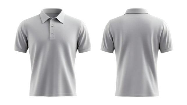 Plain Light Gray Polo Shirt Mockup Front and Back Views 3D Rendering on transparent background