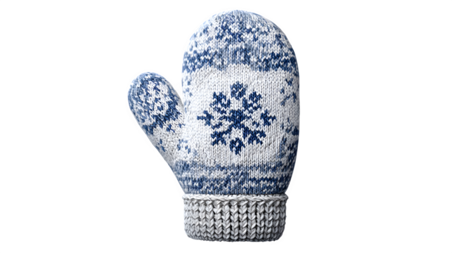 Red knitted gloves with white snowflake pattern for winter season and christmas holiday on transparent background, keeping hands warm and cozy