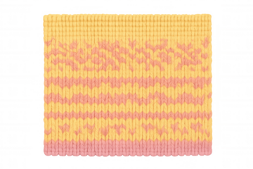 Soft knitted wool texture blending yellow and pink yarns, forming intricate woven pattern against transparent background for creative design applications