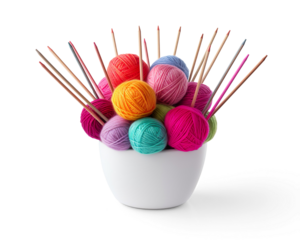 Colorful Yarn and Knitting Needles on a transparent background