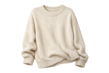 Ivory knit sweater crewneck on transparent background apparel wear