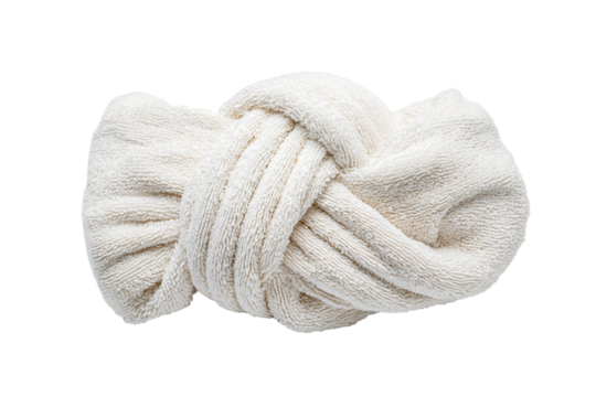 Golden turban headwear fashionably knotted for cultural expression and stylish head covering isolated on white background