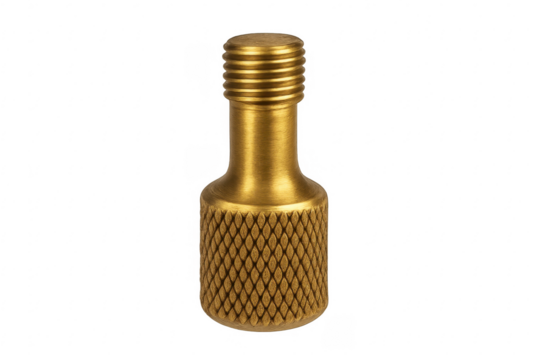 Closeup of a knurled metal ring with internal threads isolated on transparent background, showcasing its design and functionality for various applications