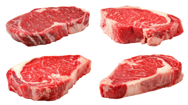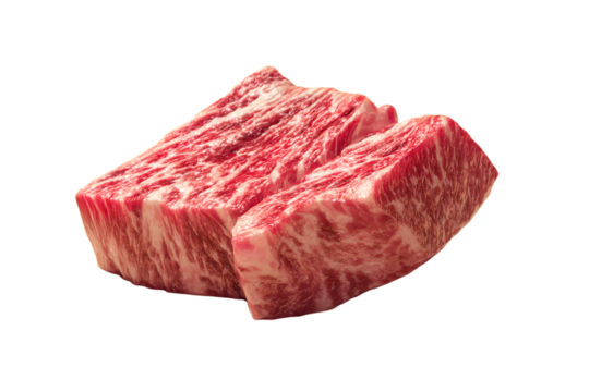 Collection of PNG. Raw wagyu A5 top view isolated on a transparent background.