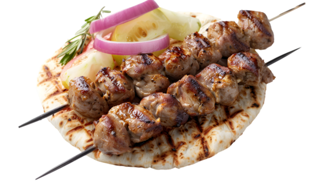 Souvlaki on isolated on transparent png background. Generative ai