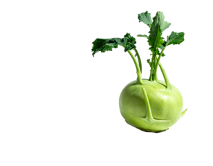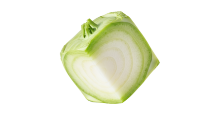 Floating Kohlrabi on transparent background, vegetable close-up view.