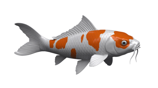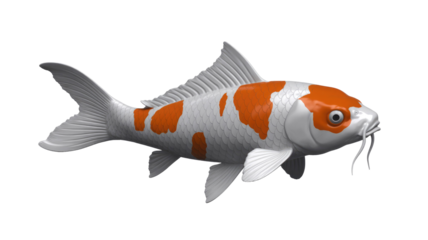 A striking digital rendering of a white and orange koi fish, swimming gracefully. This detailed illustration features prominent barbels and scales. background removed