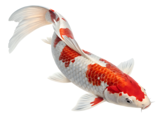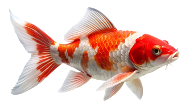 Ornamental koi fish swimming with vibrant orange and white colors  isolate  isolated on white background