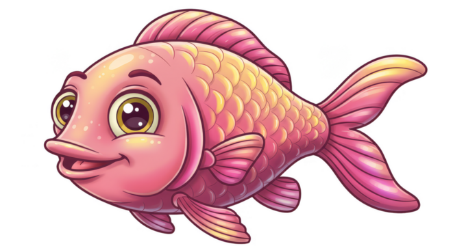 Cute Cartoon Pink Fish Isolated Freshwater Ocean Animal Illustration