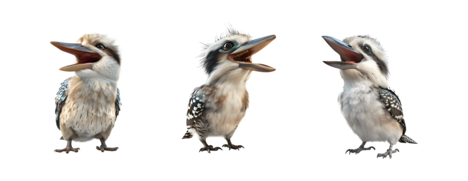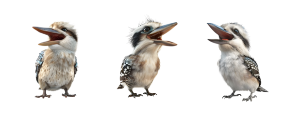 Set of Australian Kookaburra( Dacelo) bird cut out transparent isolated on white background ,PNG file ,artwork graphic design ,Generative AI