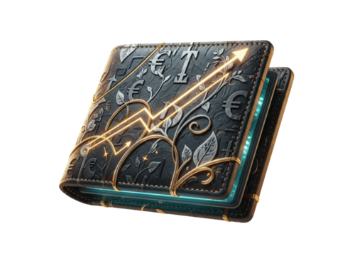 Golden Book With Ornate Cover Design Angled Side View. Luxury And Knowledge Symbol Isolated On Transparent Background