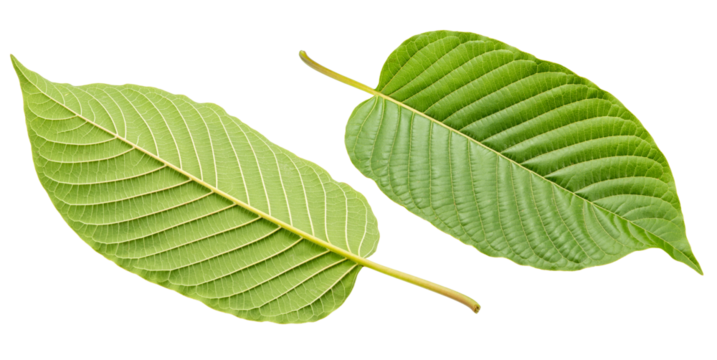 Mitragyna speciosa Korth or Kratom leaf solated on white, Mitragyna speciosa leaf Isolated on White background, PNG File..