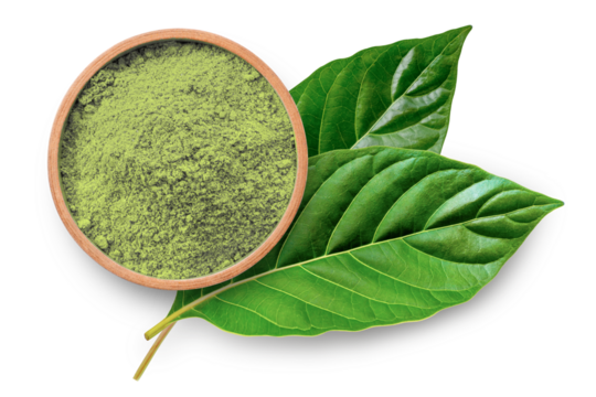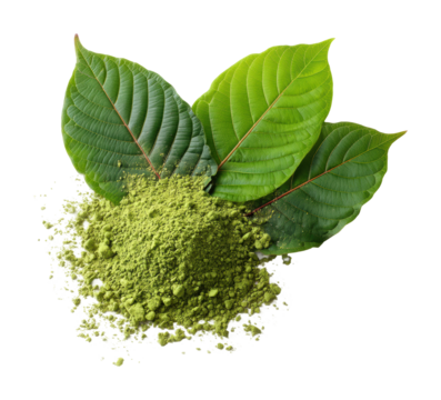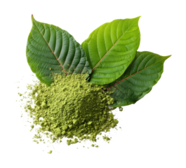 Harvesting kratom leaves and powder in nature's green. Isolated on transparent background, png.